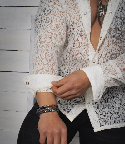 Beautiful and modern at the same time as elegant duo of bracelets, composed of the gray braided leather bracelet "Double Street" and the Beaded bracelet of Hematites with sliding closure "Bronx". Grey luxury for your wrist. Ideal for hundreds of styles!